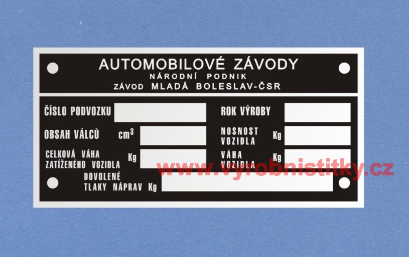 Výrobní štítek AUTOMOBILOVÉ ZÁVODY bez znaku Škoda880 Kč/ ks