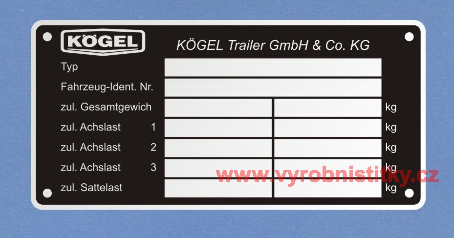 Výrobní štítek KÖGEL