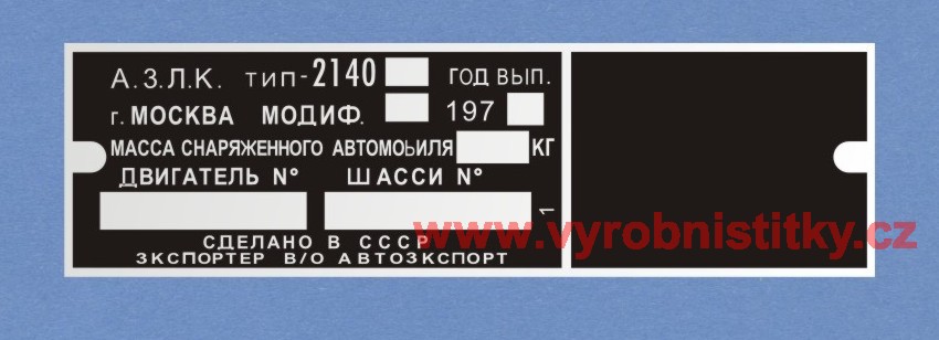 Výrobní štítek Moskvič 2140880 Kč/ ks