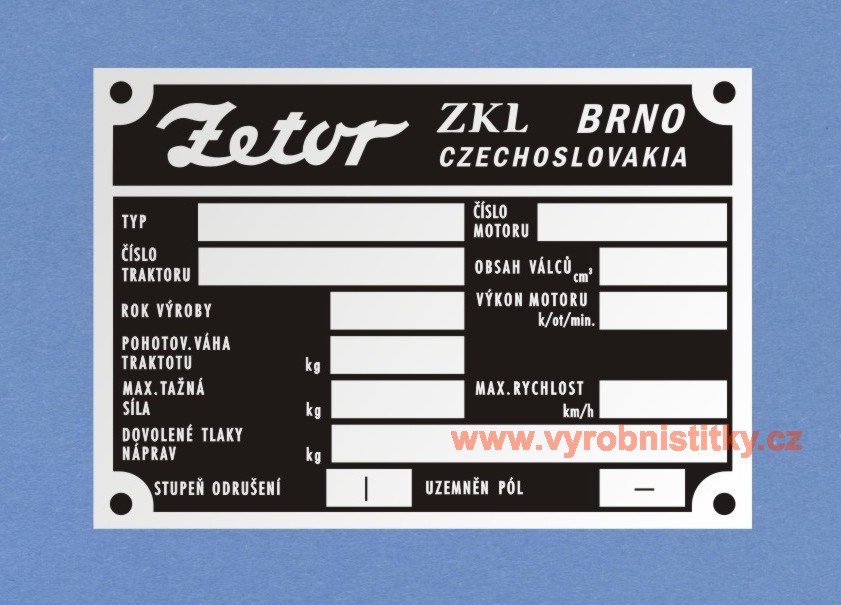 Výrobní štítek Zetor ZKL Brno prázdný pro dlouhé VIN