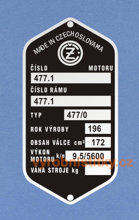 Výrobní štítek ČZ 477-obsah 172