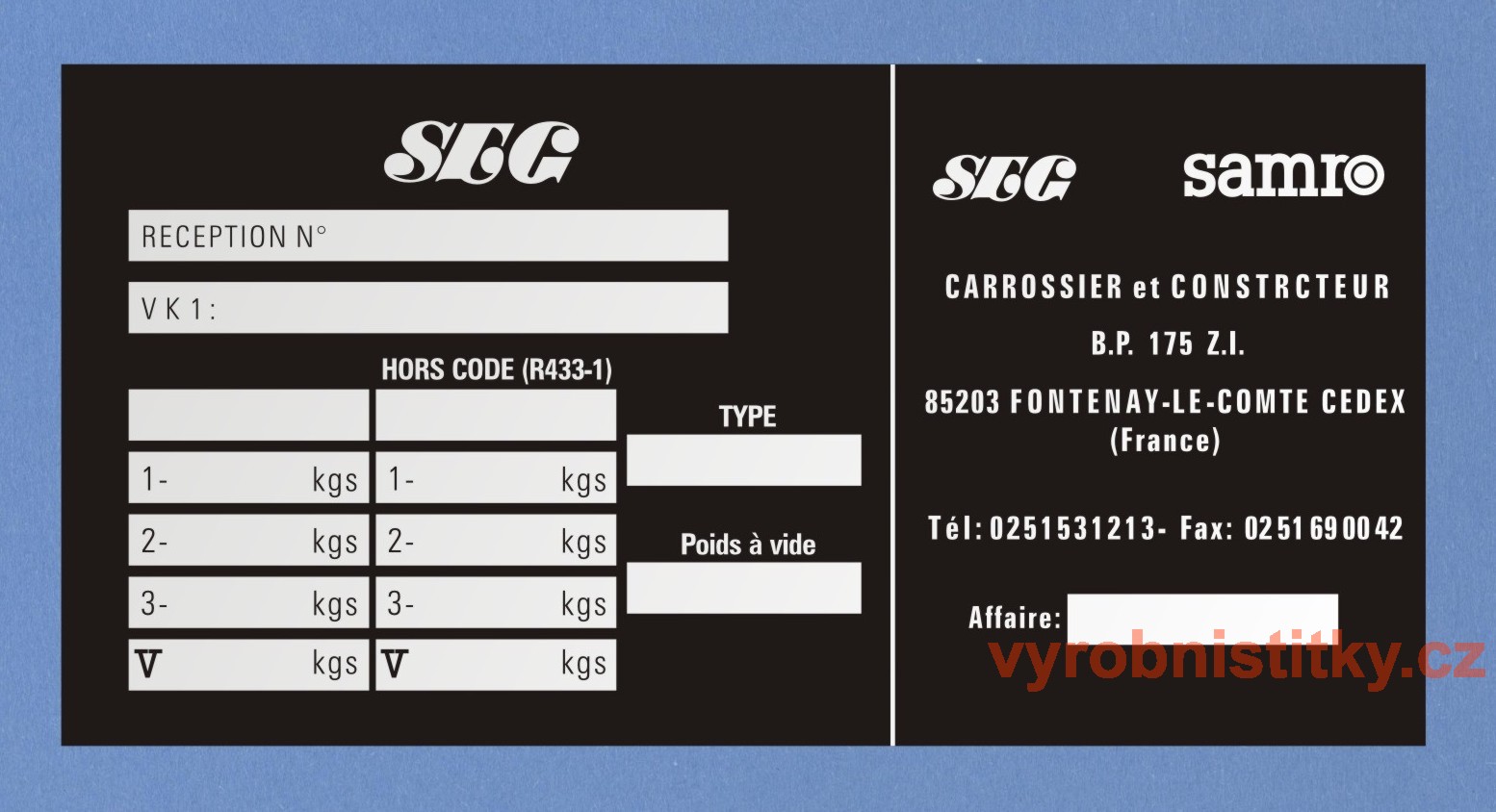 Výrobní štítek SEG samro1 310 Kč/ ks