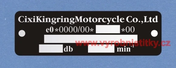 Výrobní štítek CixiKingring500 Kč/ ks