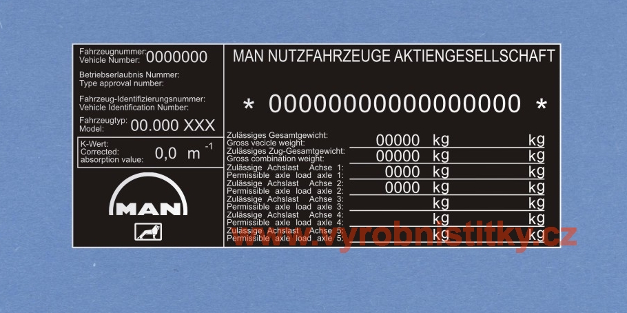 Výrobní štítek MAN NUTZFAHRZEUGE samolepící polyesterový
