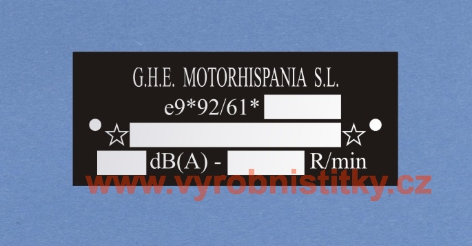 Výrobní štítek MOTORHISPANIA S.L.500 Kč/ ks
