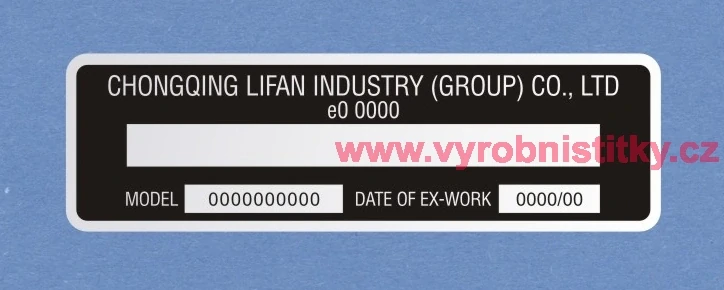 Výrobní štítek CHONGQING LIFAN YUKI500 Kč/ ks