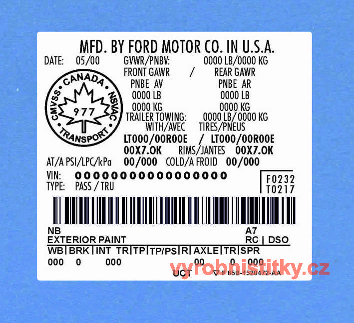 Výrobní štítek MFD, BY FORD - CANADA880 Kč/ ks