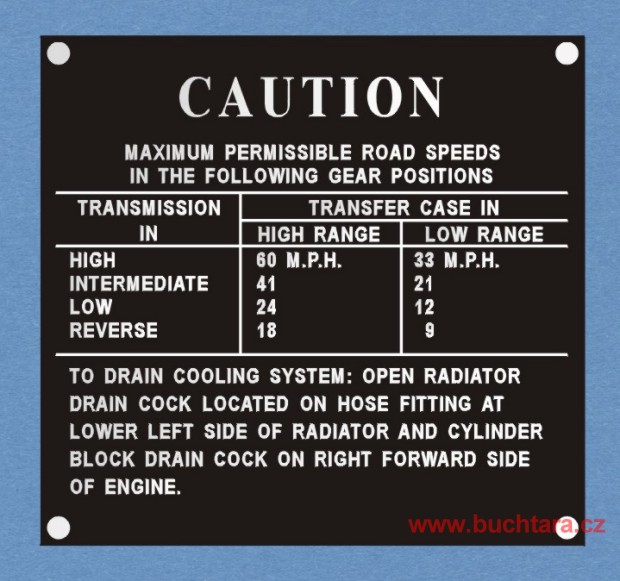 Výrobní štítek JEEP - CAUTION