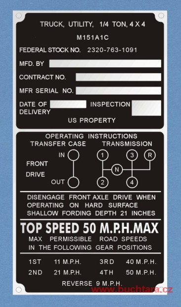 Výrobní štítek JEEP - TRUCK UTILITY1 310 Kč/ ks