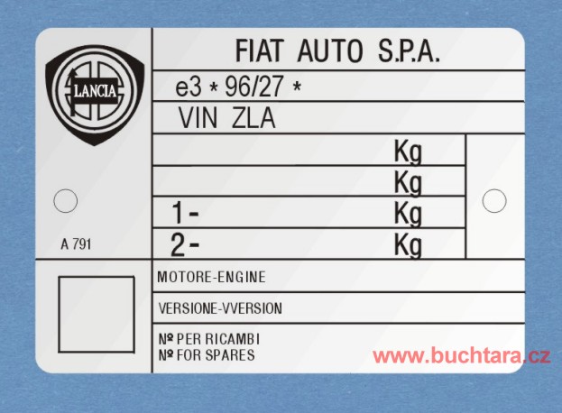 Výrobní štítek LANCIA