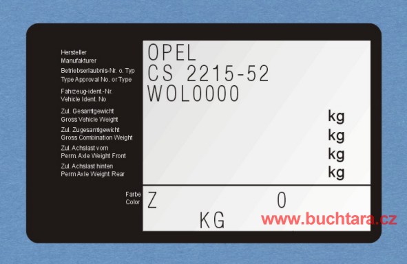 Výrobní štítek OPEL s textama