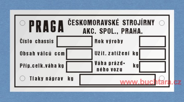 Výrobní štítek PRAGA Českomoravské strojírny880 Kč/ ks