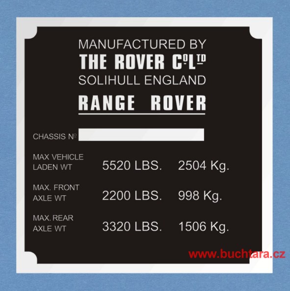 Výrobní štítek RANGE ROVER1 310 Kč/ ks