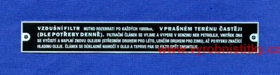 Štítek čističe vzduchu Tatra 805