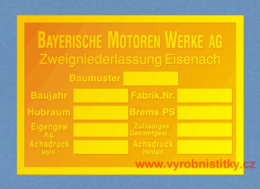 Výrobní štítek BMW - Bayerische Motoren Werke3 000 Kč/ ks