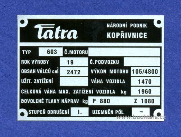 Výrobní štítek T603 předepsaný