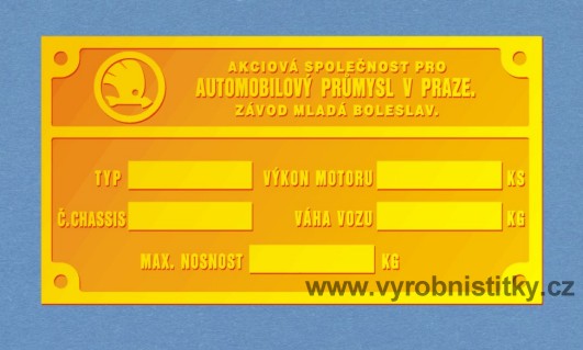 Výrobní štítek Škoda 4303 000 Kč/ ks