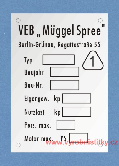 Výrobní štítek VEB Müggel-Spree880 Kč/ ks