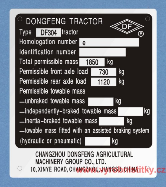 Výrobní štítek DONGFENG TRACTOR1 310 Kč/ ks