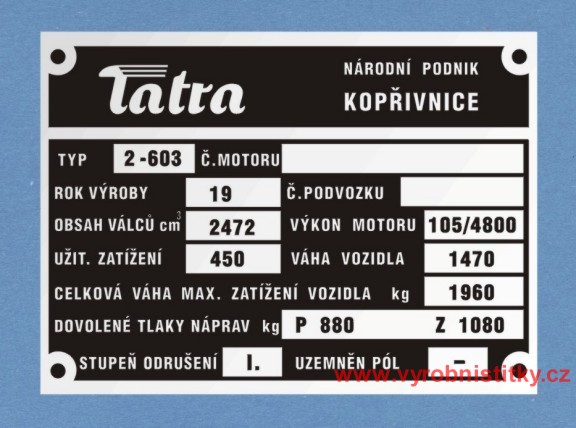 Výrobní štítek Tatra T603 bez "H"880 Kč/ ks