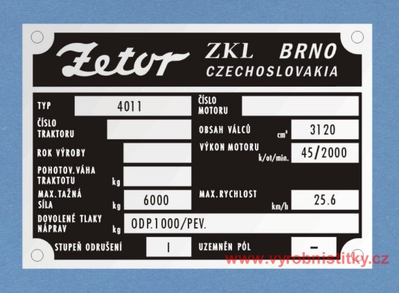 Výrobní štítek Zetor 4011 - prázdný880 Kč/ ks