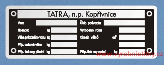 Výrobní štítek Tatra 111 prázdný