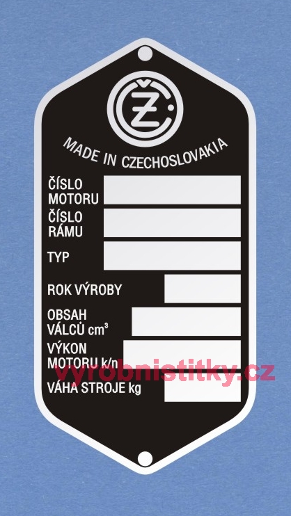 Výrobní štítek ČZ prázdný