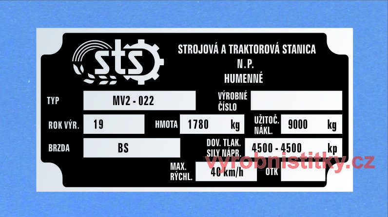 Výrobní štítek STS HUMENNÉ MV2-022, HMOTA 1780880 Kč/ ks