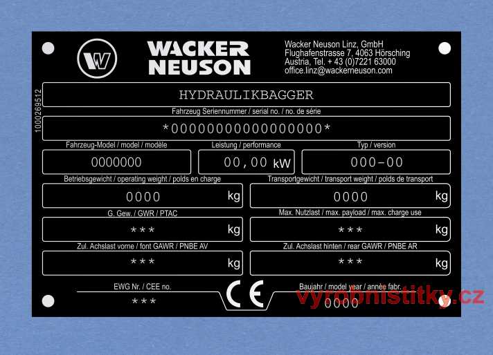 Výrobní štítek WACKER NEUSON 105 X 70 mm