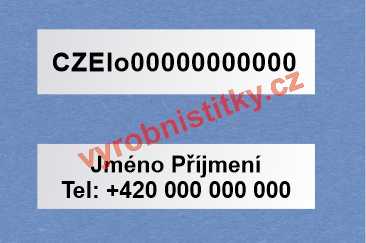 Sada 2 kusů samolepících štítků 47 x 11 x 0,18 mm z hliníkové folie. Rozměry lze upravit. Potřebné údaje napište do Poznámek objednávky.
