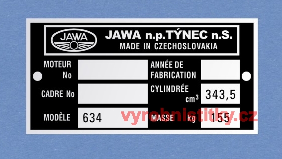Výrobní štítek JAWA 634 francouzský