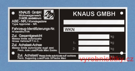 Výrobní štítek KNAUS Jandelsbrunn880 Kč/ ks