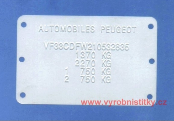 Výrobní štítek s vystouplými čísly na zakázku