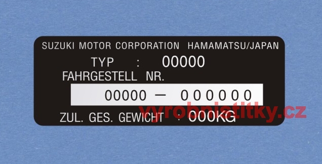 Výrobní štítek SUZUKI MOTOR černý Al folie700 Kč/ ks