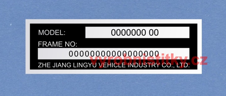 Výrobní štítek ZHE JIANG700 Kč/ ks