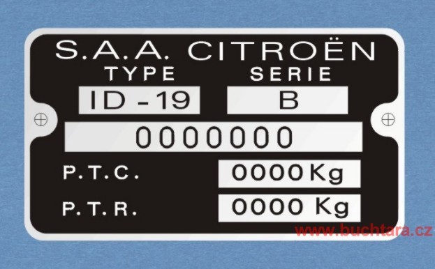 Výrobní štítek Citroen - hlavní