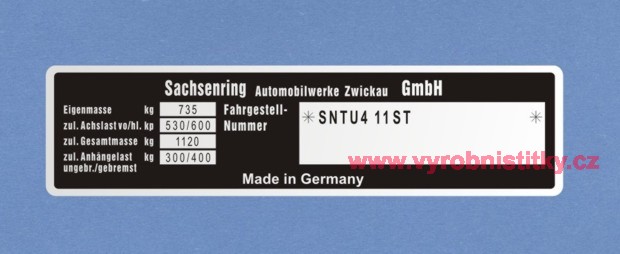 Výrobní štítek Sachsenring Automobilwerke880 Kč/ ks