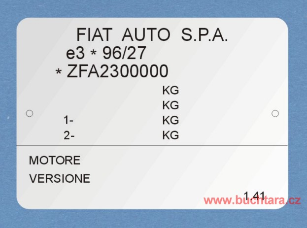 Výrobní štítek FIAT AUTO S.P.A. obecně