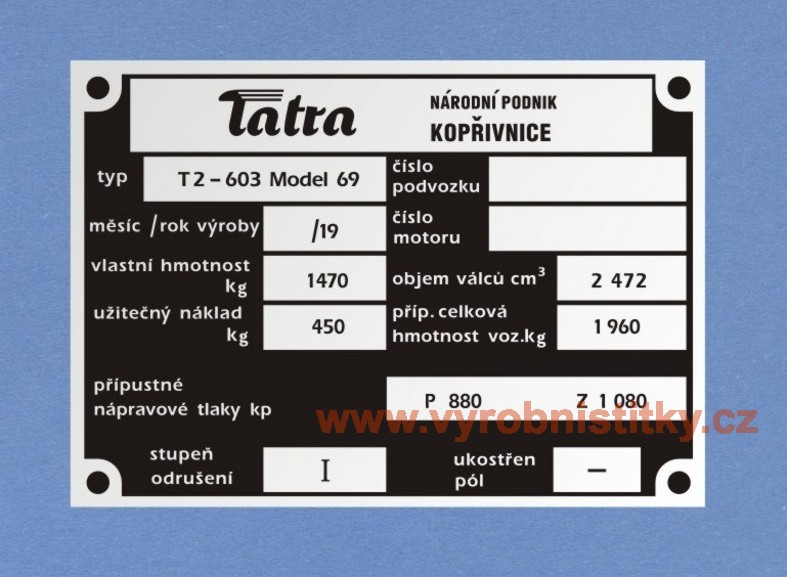 Výrobní štítek T603 - 2 Model 69880 Kč/ ks