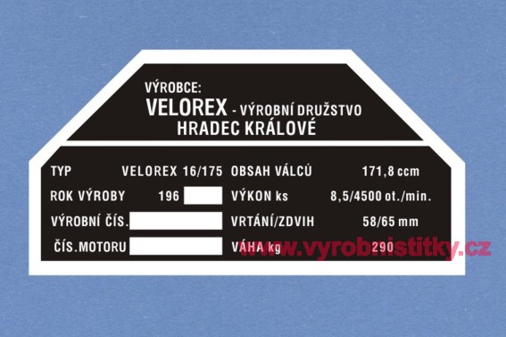 Výrobní štítek Velorex 175 Hradec Králové220 Kč/ ks