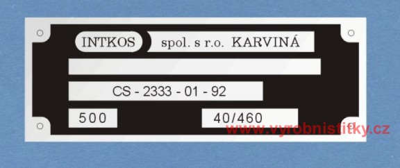 Výrobní štítek INTKOS