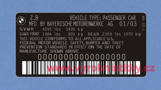 Výrobní štítek BMW Alpina Z8 - samolepící polyester