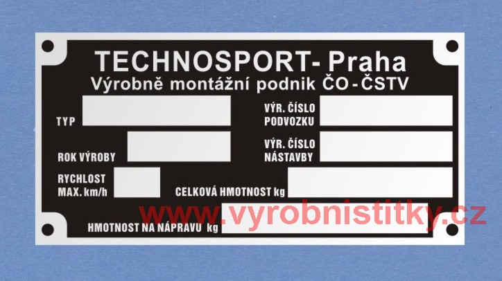 Výrobní štítek TECHNOSPORT - krátké VIN