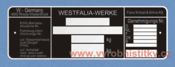 Výrobní štítek WESTFALIA-WERKE880 Kč/ ks
