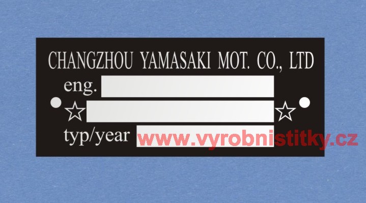 Výrobní štítek CHANGZHOU YAMASAKI anglický500 Kč/ ks