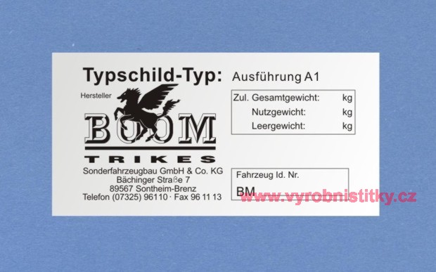 Výrobní štítek BOOM TRIKES