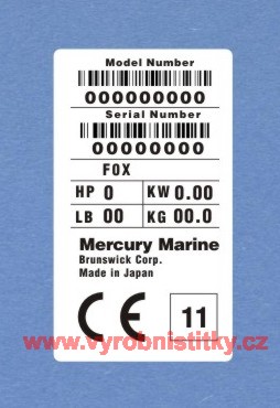 Výrobní štítek Mercury Marine880 Kč/ ks
