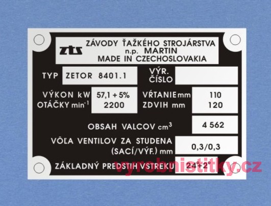 Výrobní štítek ZTS ZETOR 8401.1880 Kč/ ks