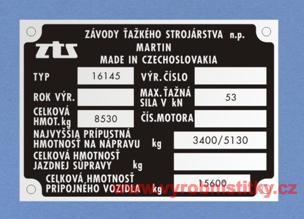 Výrobní štítek ZTS 16145 n.p.