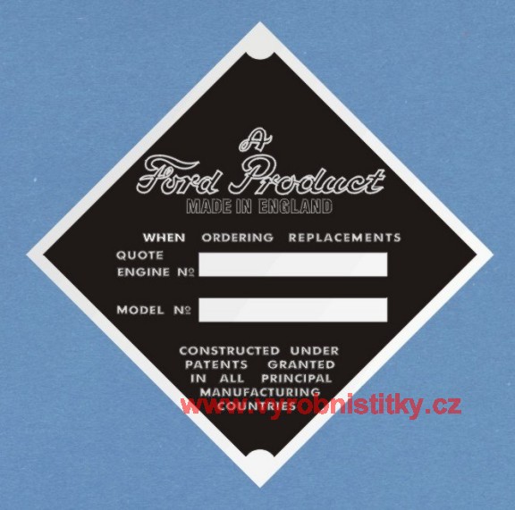 Výrobní štítek Ford Anglia880 Kč/ ks
